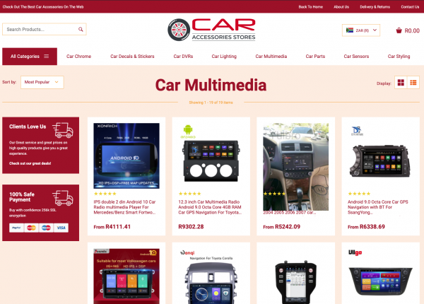 Selling the coolest and best quality car accessories including Parking Sensors, Chrome Styling, Decals, DVRs, Multimedia and more through your dropshipping store, with all the products hand chosen to compliment each other without them being overly available in the local market to ensure you keep your edge of uniqueness, with worldwide delivery.
