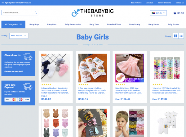 Selling fantastic baby/kids/mums Products including Babies, Toddlers, Play Time, Before School, In School, Learning and Mums to be! and more through your dropshipping store, with all the products hand chosen to compliment each other without them being overly available in the local market to ensure you keep your edge of uniqueness , with worldwide delivery.