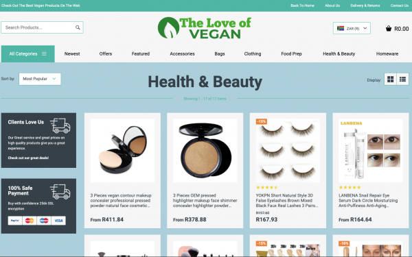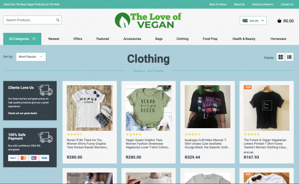 A fantastic Vegan Food, Clothing and Accessories Store featuring over 100 products! With multiple product categories including Food, Accessories, Bags e and much more selling high quality products and accessories through your dropshipping store, with all the products hand chosen to compliment each other without them being overly available in the local market to ensure you keep your edge of uniqueness , with worldwide delivery.